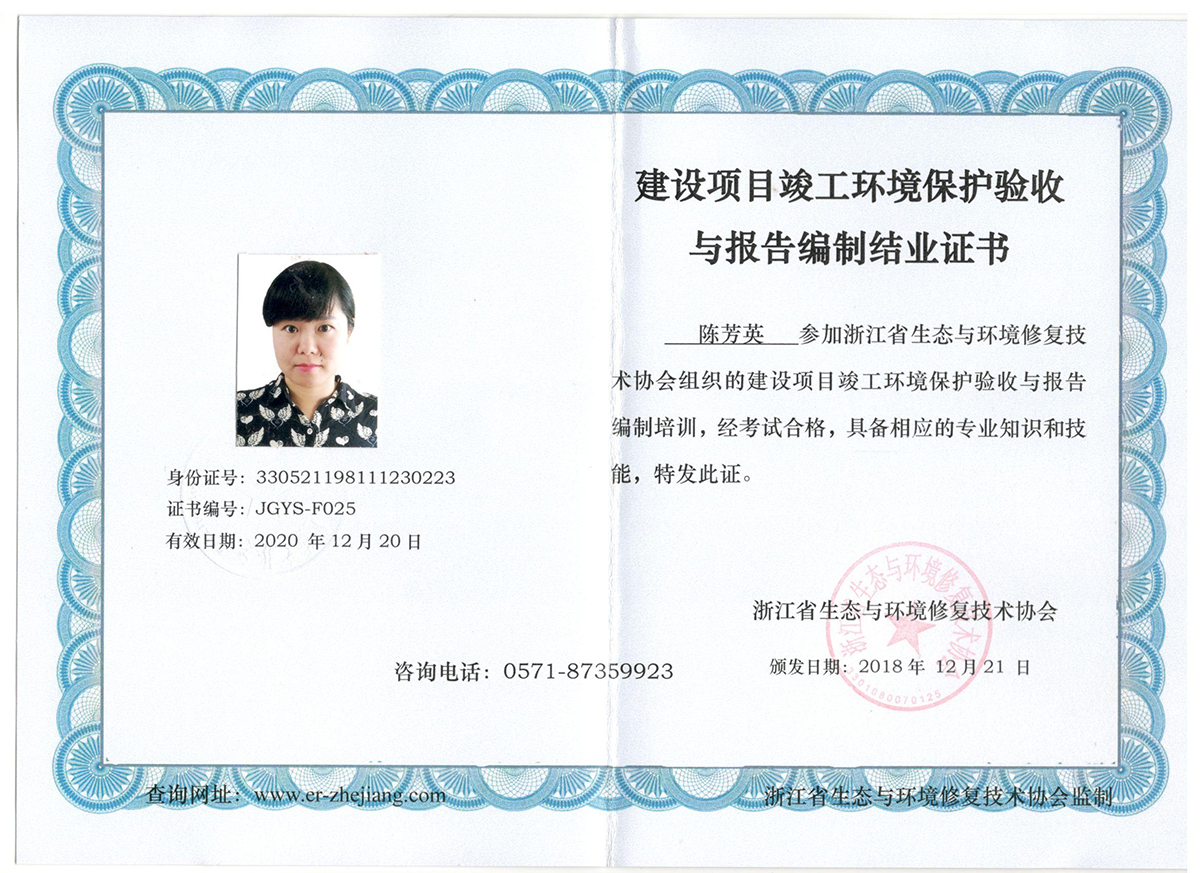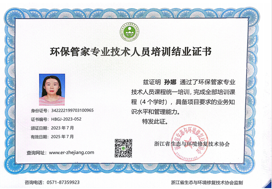 浙江省生態與環境修復工程總承包服務能力評價證書