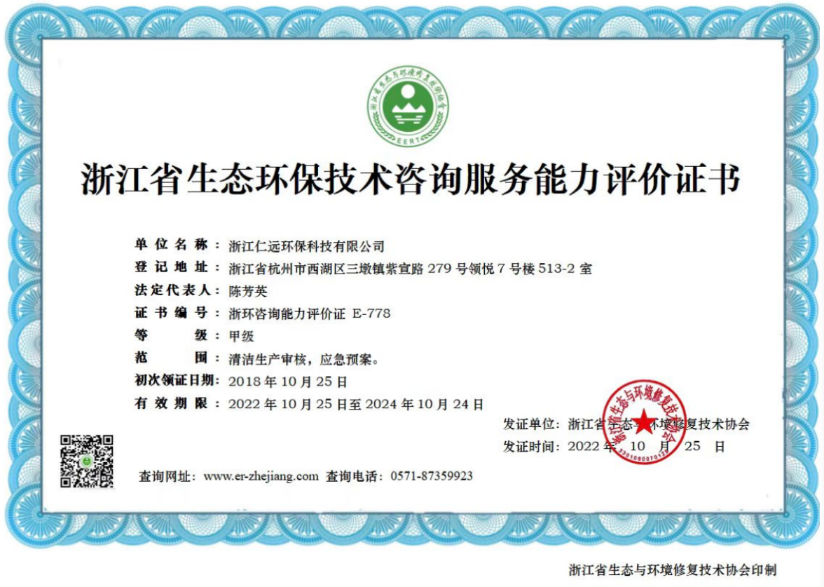 浙江省生態環保技術咨詢服務能力評價證書-清潔生產審核,應急預案