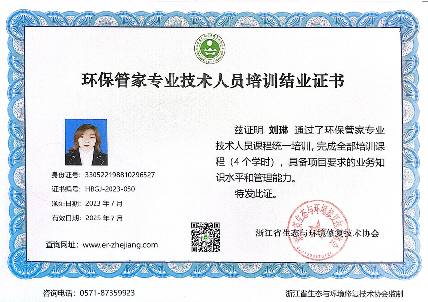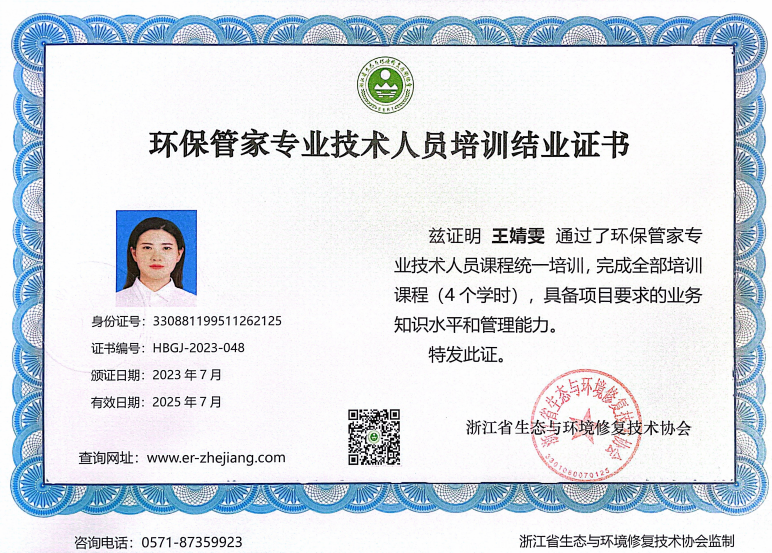 浙江省生態與環境修復技術協會環保管家團體起草證書
